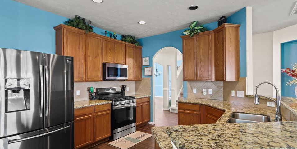 Step into this stunning kitchen featuring sleek stainless steel appliances, elegant granite countertops, breakfast bar complete with bar seating, is ideal for morning coffee or evening conversations and the traditional cabinetry provides ample storage,